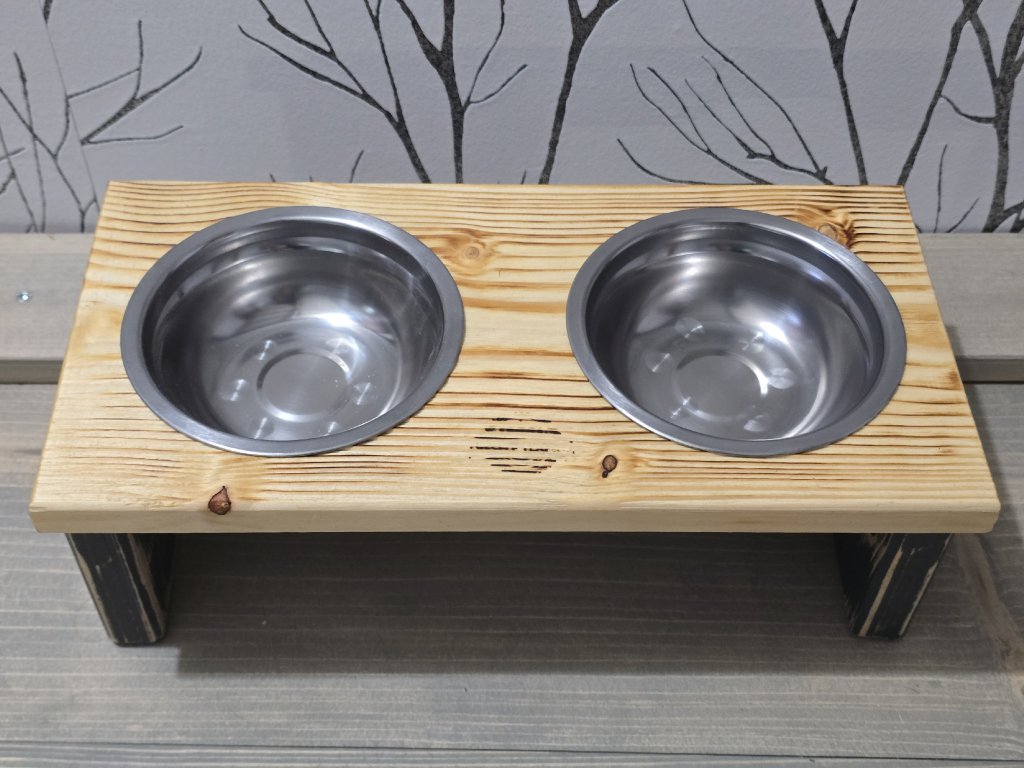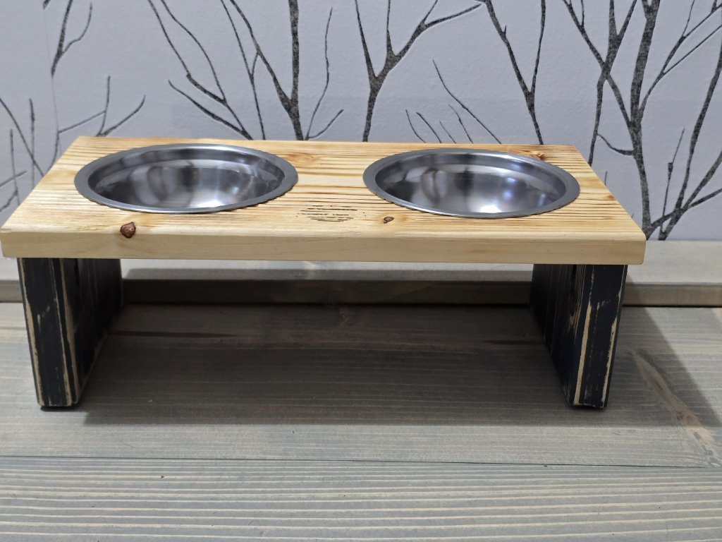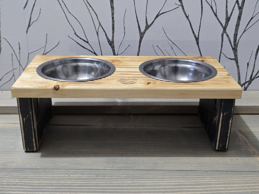 Stylový stojánek splňující veškeré požadavky pro správné krmení vašeho mazlíčka. Pokud si přejete verzi s jiným počtem misek, neváhejte nás kontaktovat pro individuální konfiguraci produktu. Jméno vašeho mazlíčka rádi přidáme zdarma, uveďte v komentáři k objednávce v košíku. Keramické misky jsou součástí balení.
